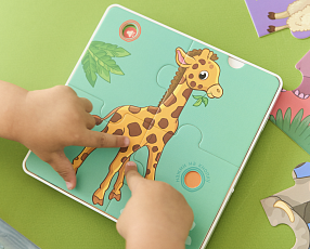 Коллекция говорящих пазлов от бренда интерактивных и развивающих игрушек BertToys пополнилась новинками. Теперь с помощью серии игрушек Пазлтач ребенок сможет выучить не только домашних животных, но и «Животных леса» и «Животных зоопарка».